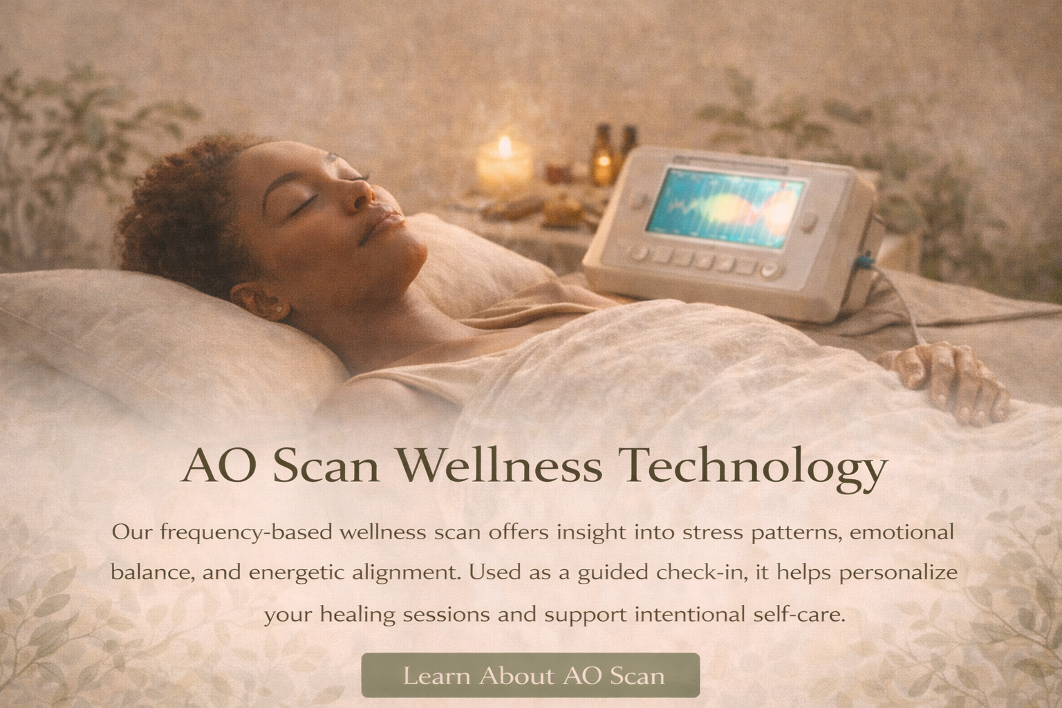 Our AO Scan provides a gentle wellness check-in to support awareness around stress, emotional overload, and energetic balance so your healing sessions are more intentional and personalized.